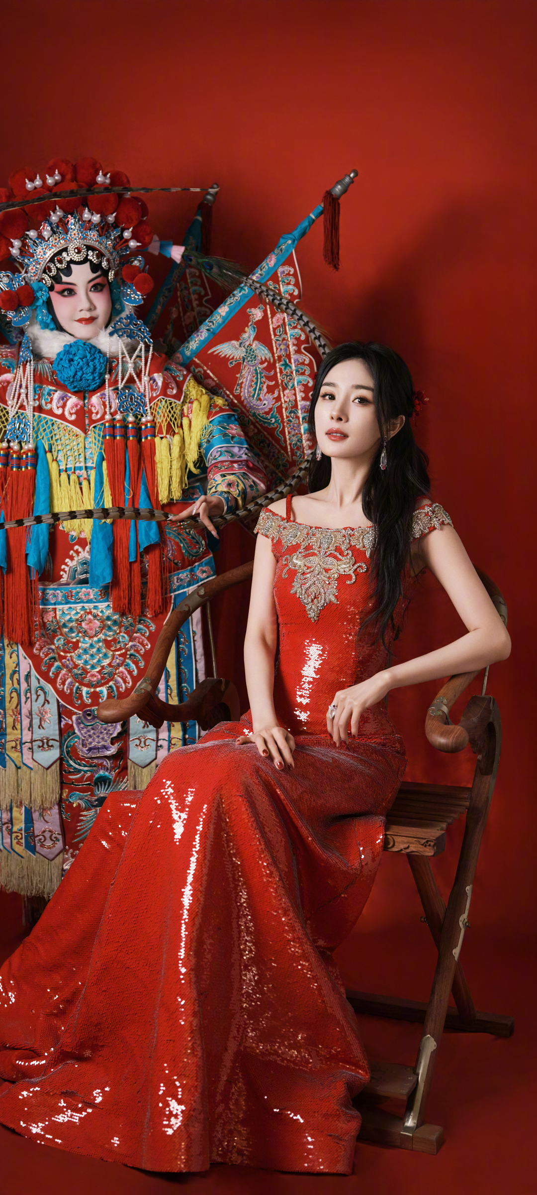 国风红色裙子杨幂美女高清免费手机壁纸下载