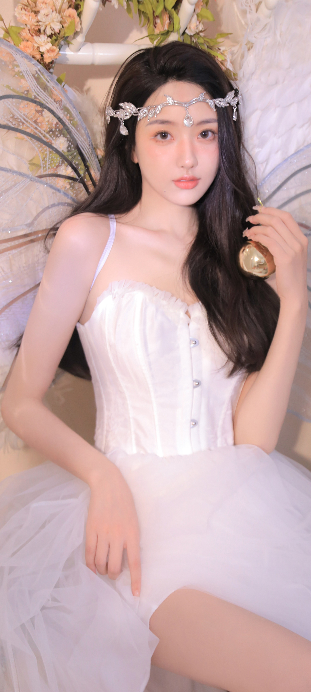 章若楠白色衣服蝴蝶结造型美女免费手机壁纸下载