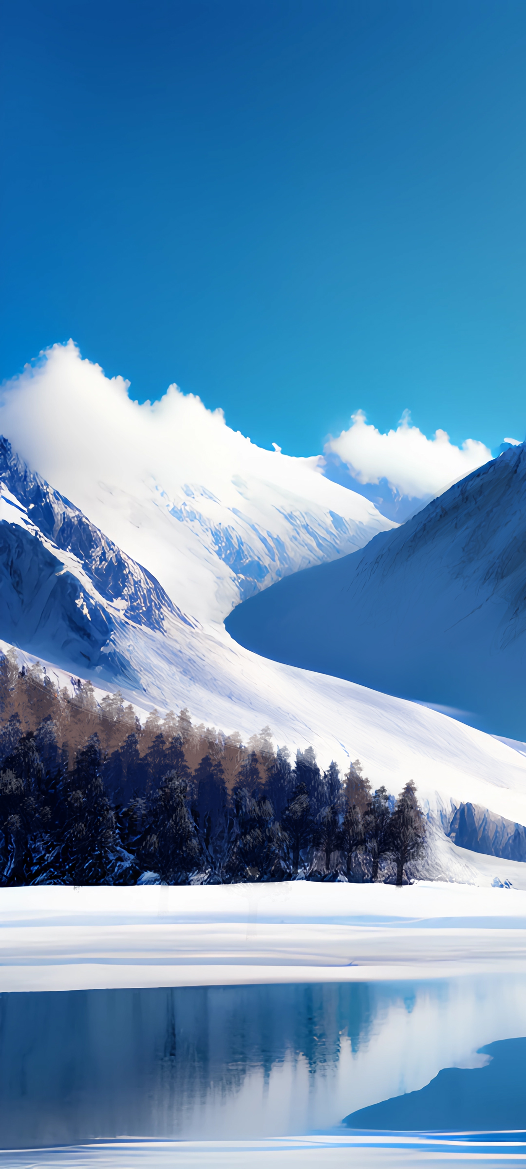 雪山湖泊树林倒影风景手机壁纸免费下载