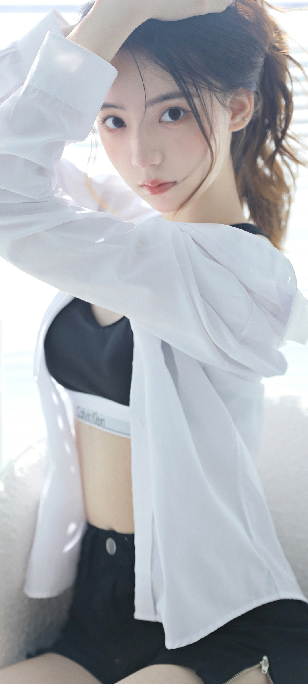 白色衣服 黑色短裤 清纯养眼美女全屏手机壁纸