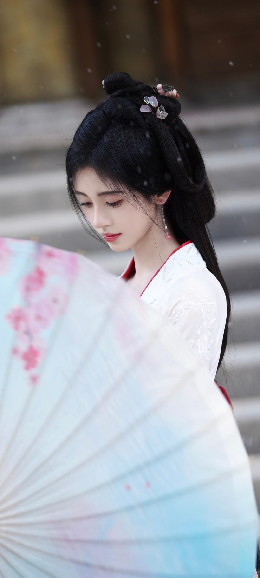 鞠婧祎 油伞 古装美女手机壁纸