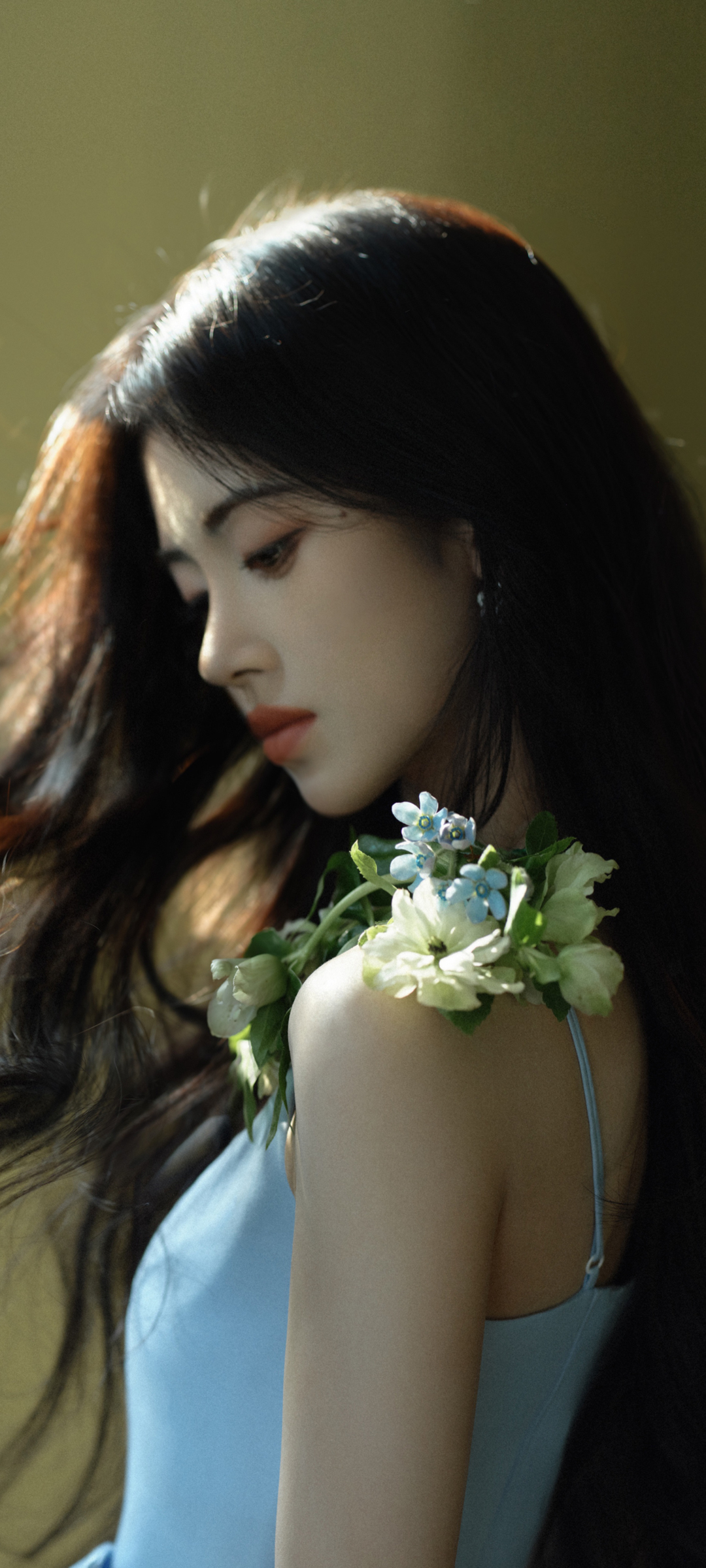 鞠婧祎蓝色裙子侧脸美女手机壁纸免费下载