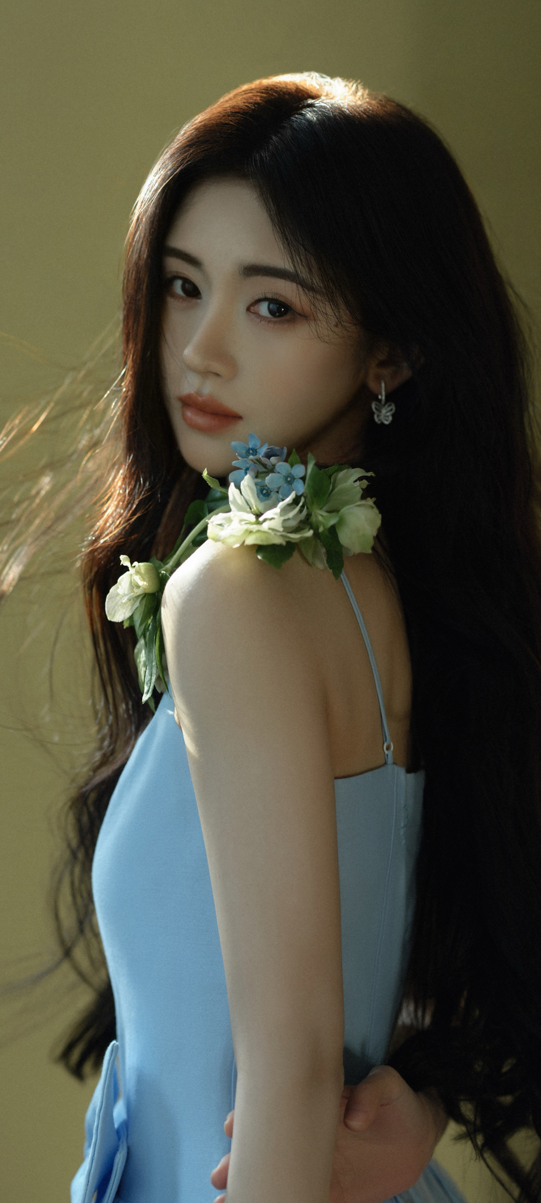 鞠婧祎蓝色裙子手机壁纸高清免费下载