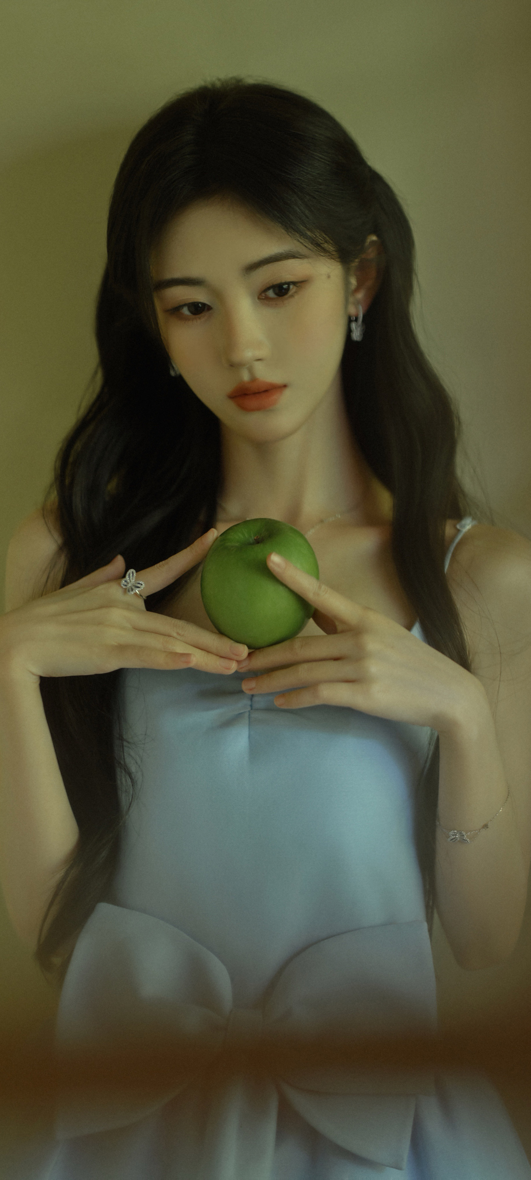 鞠婧祎 蓝色裙子 水果 手机壁纸