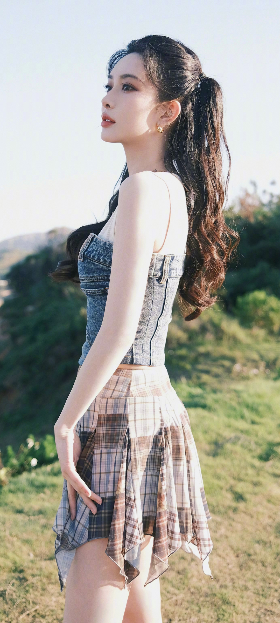 孟子义侧身户外高山美女形象 免费手机壁纸下载