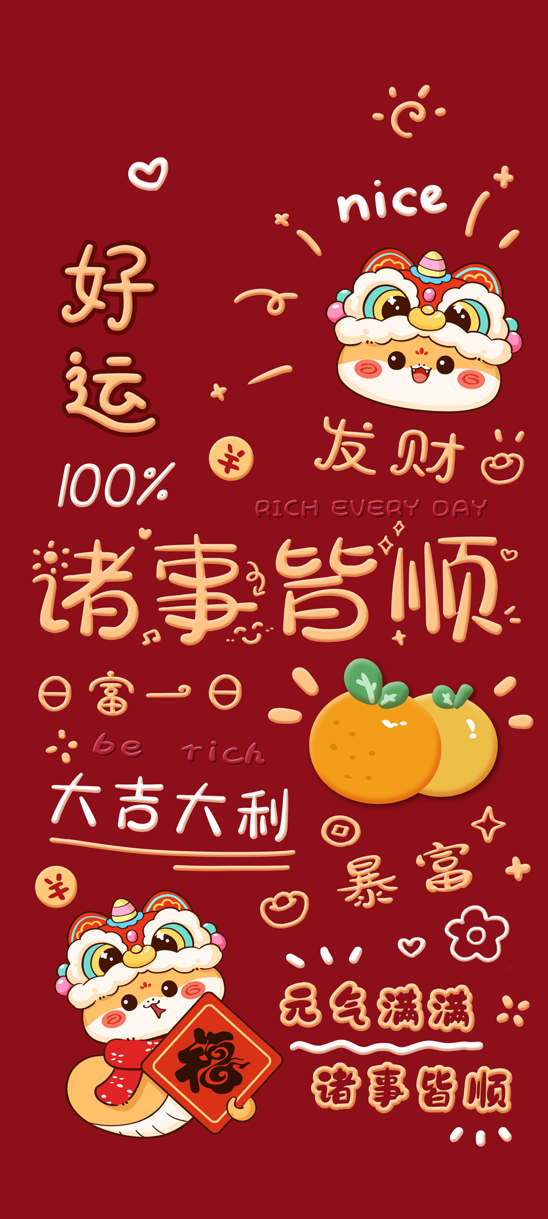 2025蛇年红色背景诸事皆顺大吉大利手机壁纸