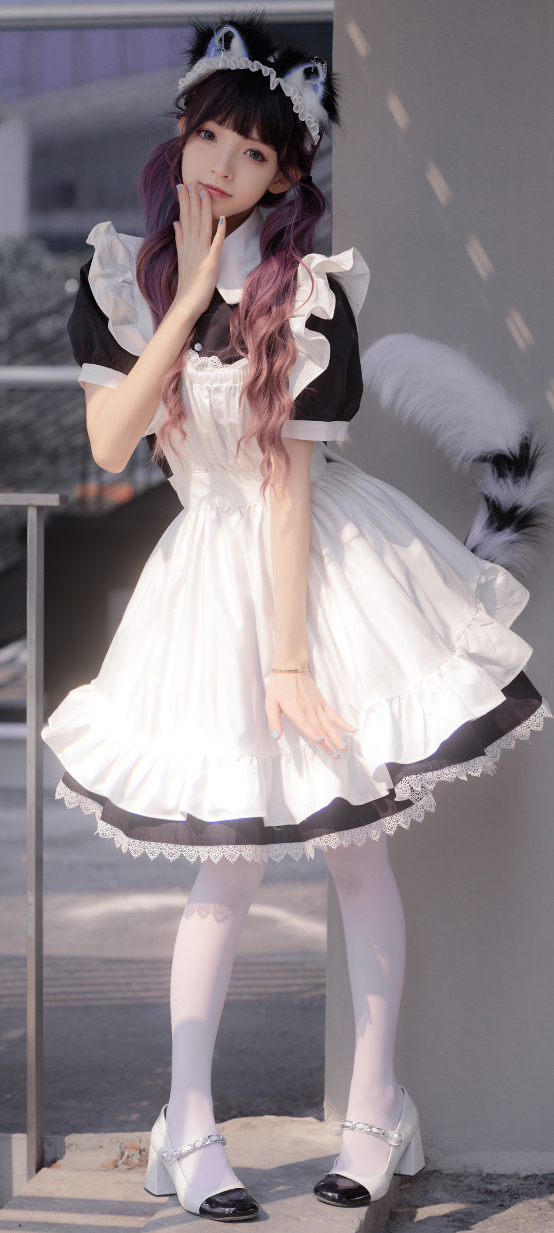 长发美女彭十六elf好看身材全面屏手机壁纸免费下载