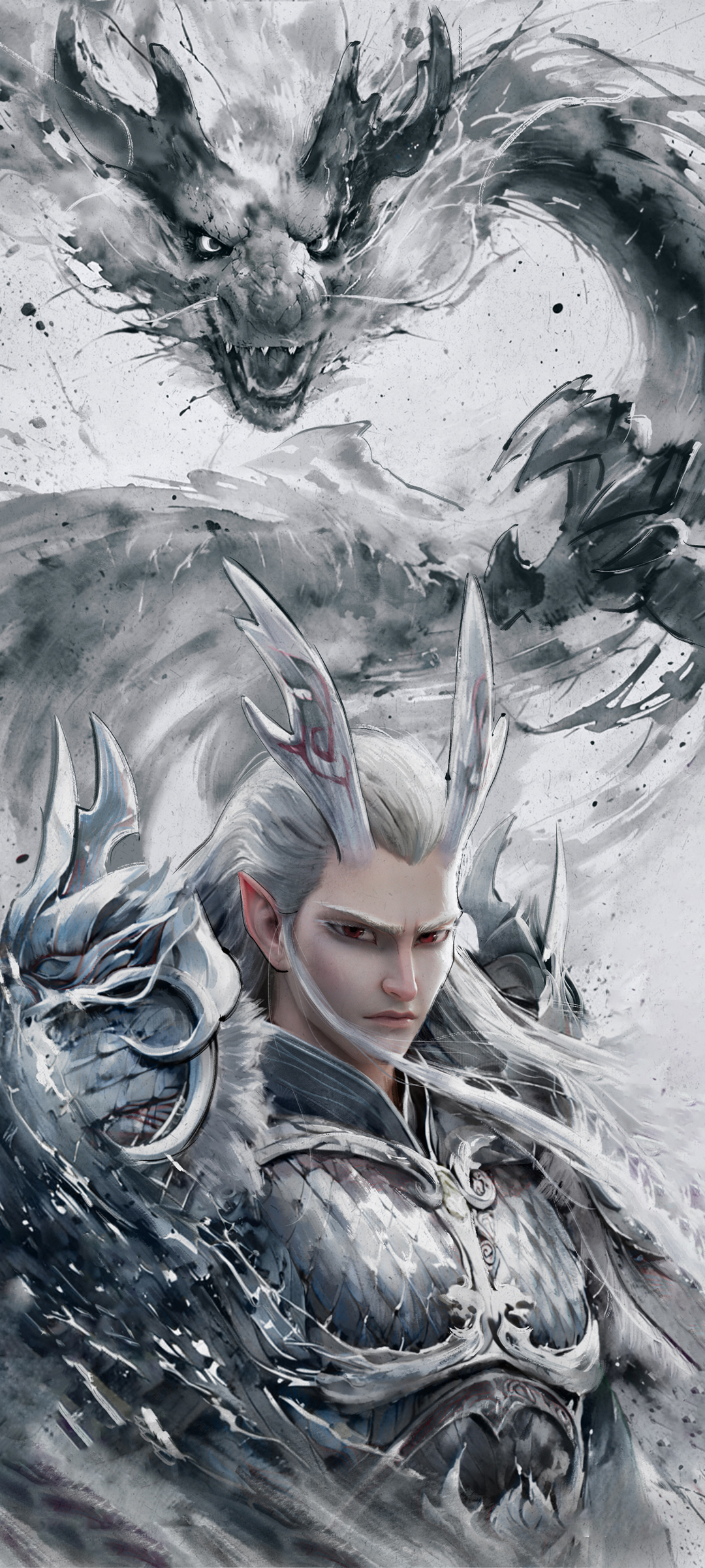 敖光《哪吒之魔童闹海》水墨海报剧照免费手机壁纸下载