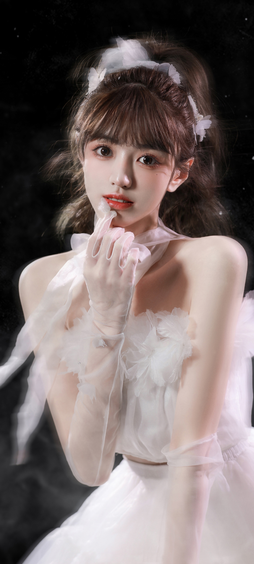 美女白色裙子配手套高清好看手机壁纸免费下载