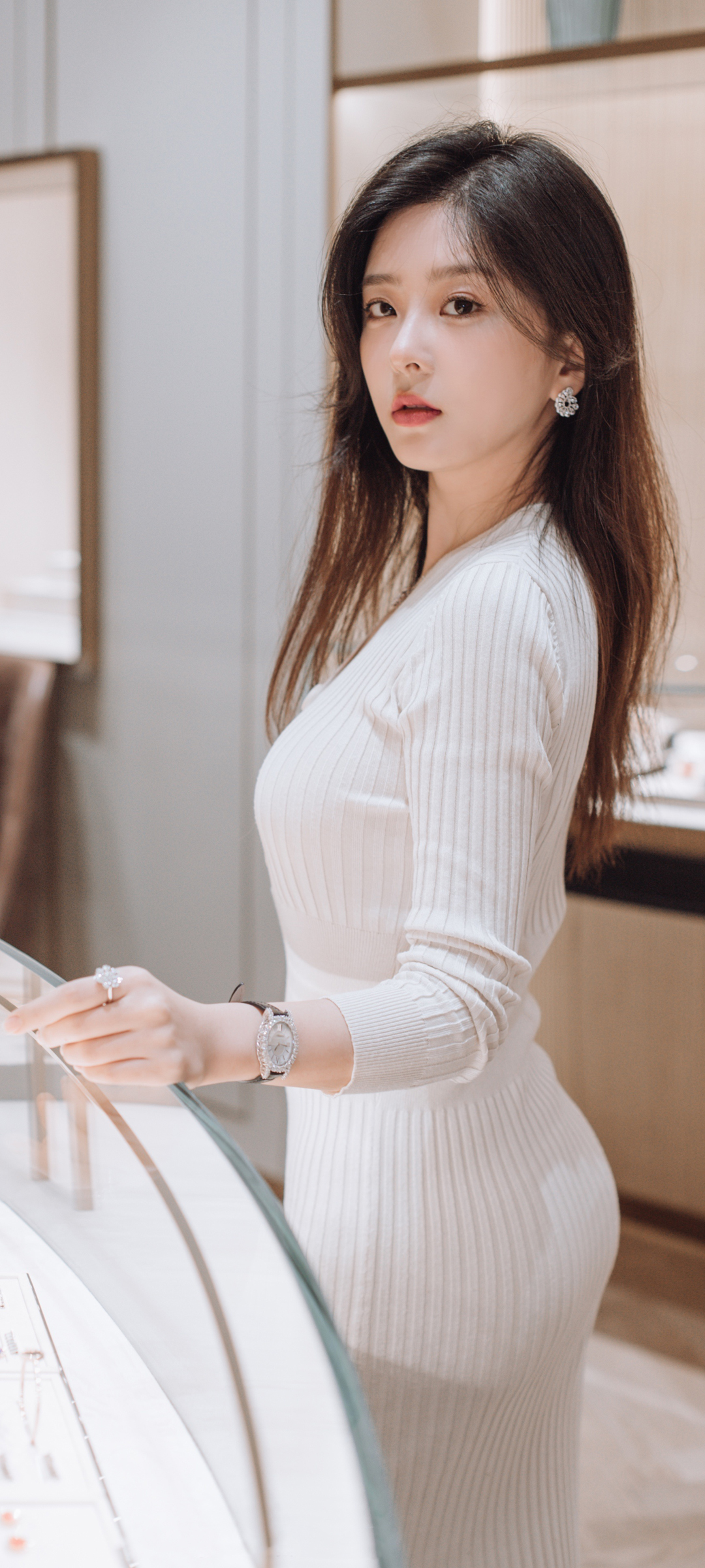 王秋紫白色毛衣美女全屏免费手机壁纸下载