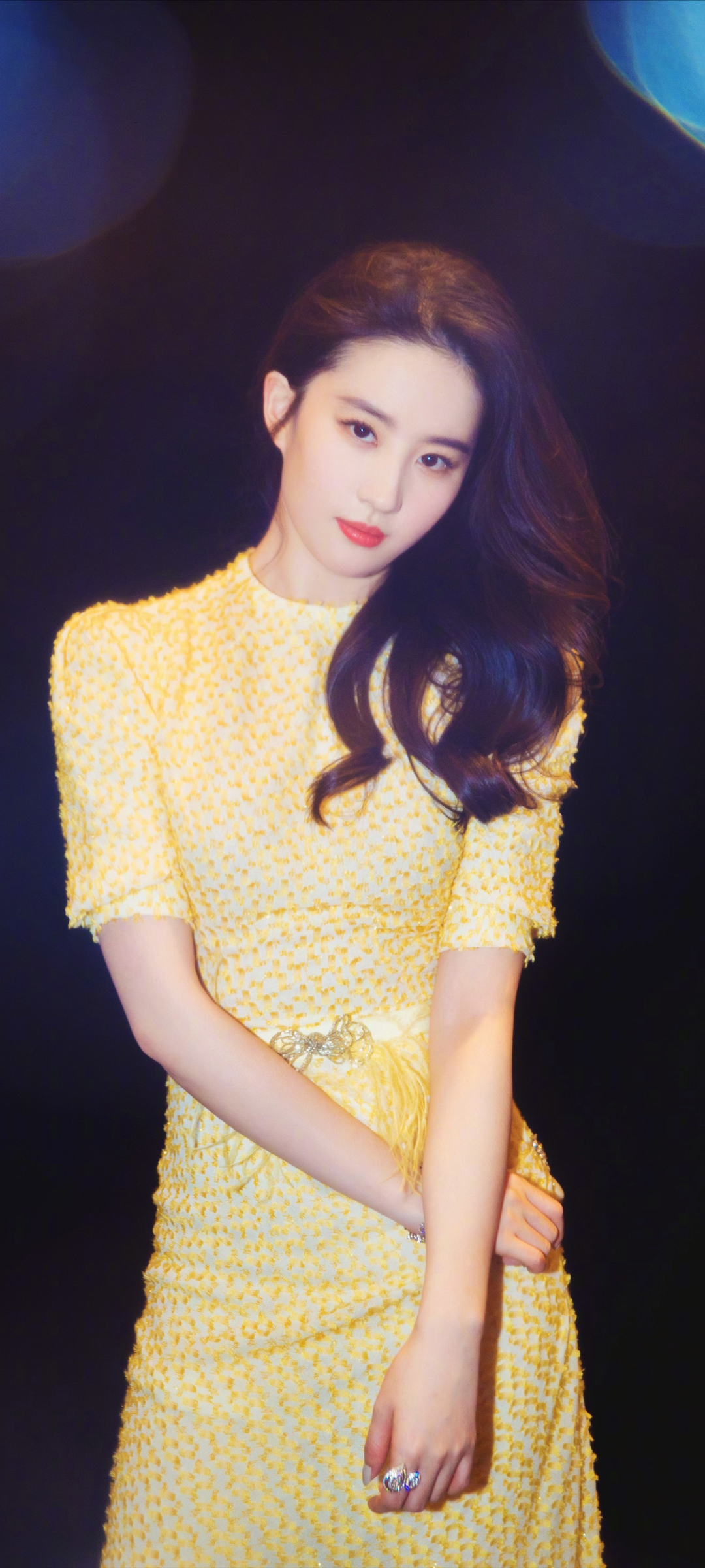 女神刘亦菲黄色长裙子高清全面屏手机壁纸
