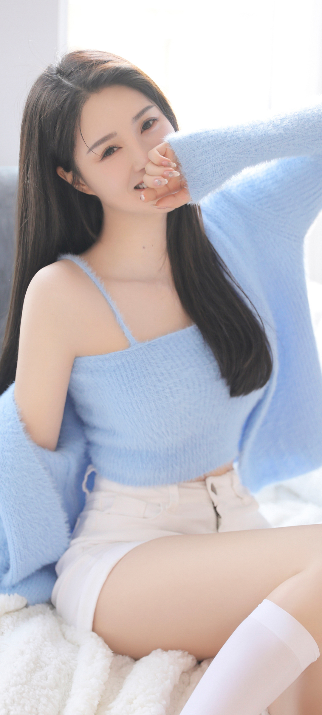 彭十六黄色毛衣白色短裤高清美女手机壁纸免费下载