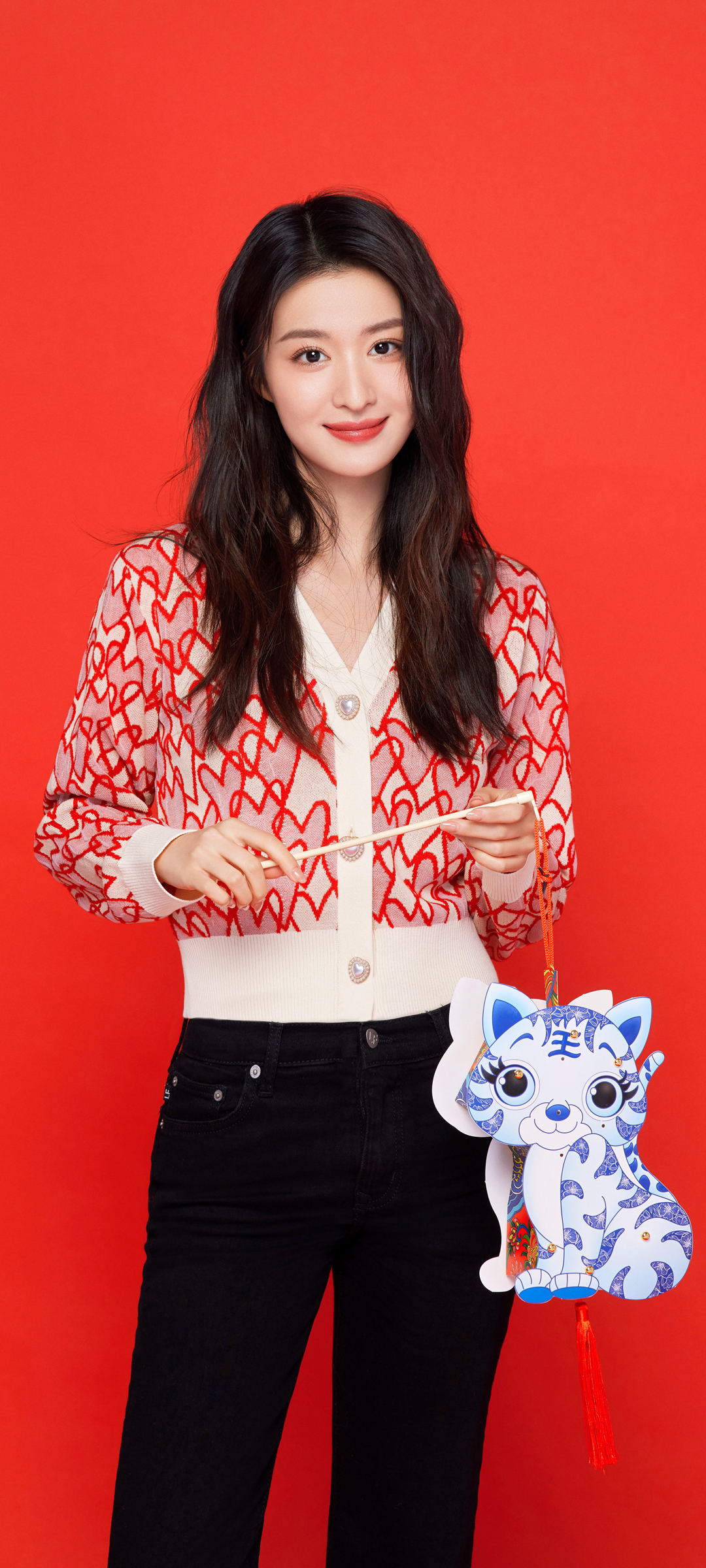 鞠婧祎红色裙子雪景美女免费手机壁纸下载