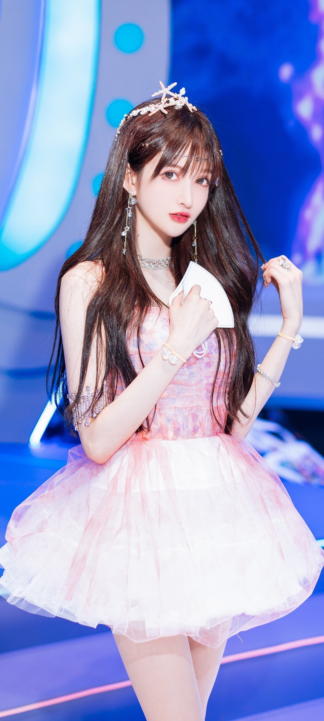 女神王羽杉 粉色裙子 美腿全面屏手机壁纸