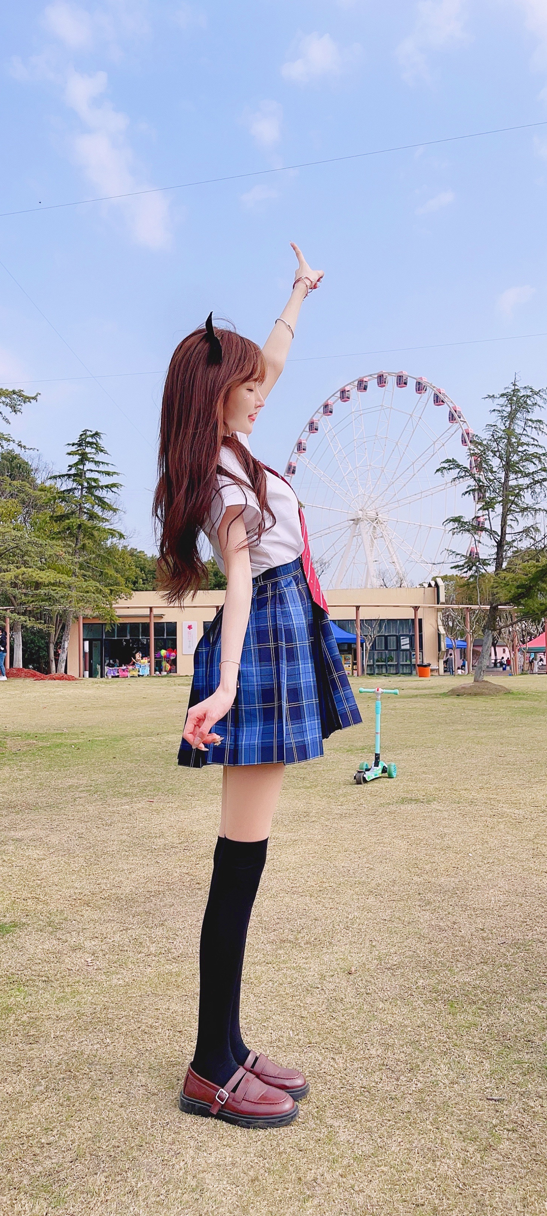王羽杉 百褶裙 黑裤袜美腿手机壁纸