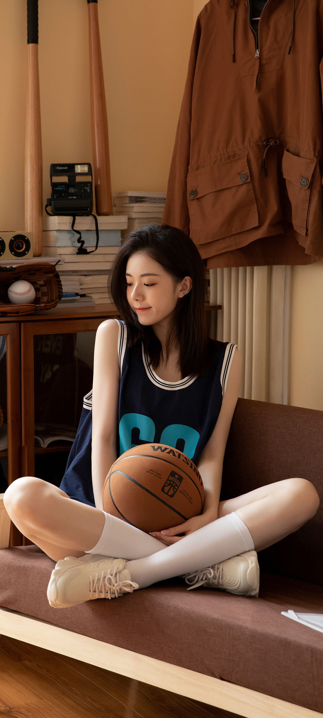曹婉瑾居家休闲装美腿高清手机壁纸免费下载