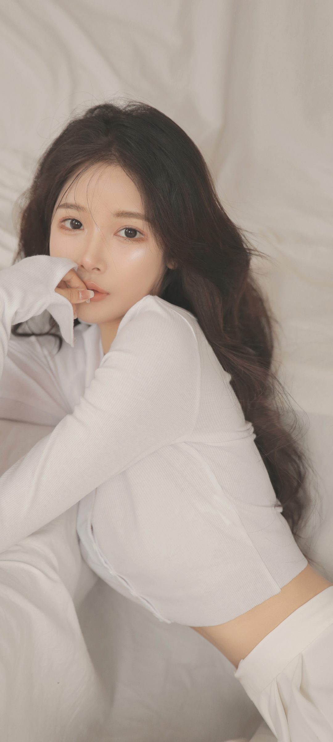 小陆离可爱一手托下巴美女手机壁纸免费下载