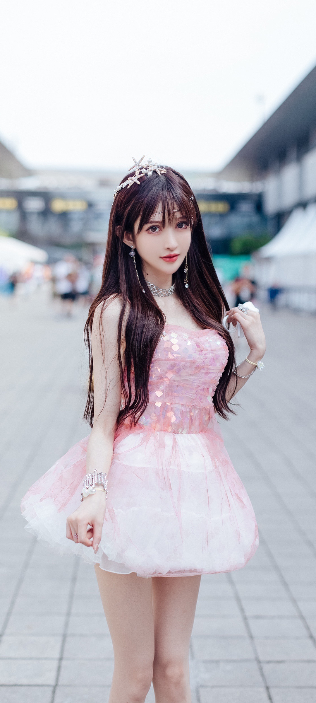 好看女神王羽杉粉色短裙美腿美女全屏免费手机壁纸下载