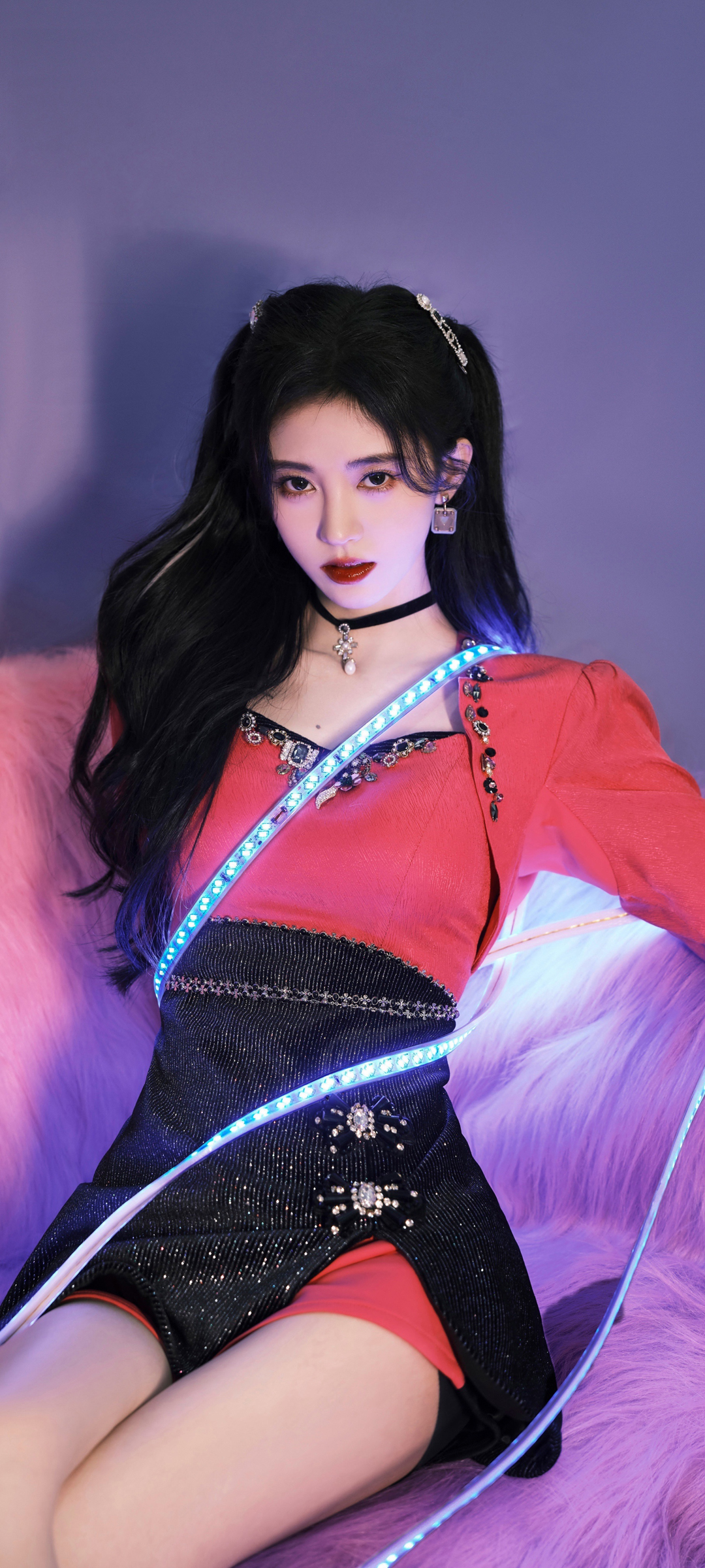鞠婧祎红色衣服黑色短裙高清美女手机壁纸免费下载