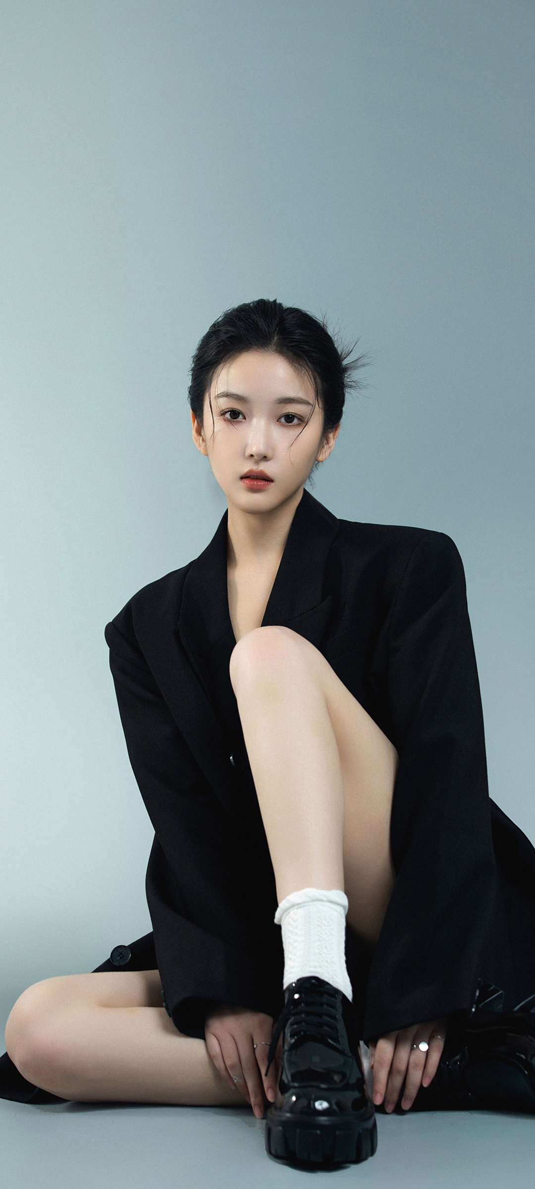 黑色西装美腿美女曹婉瑾全面屏手机壁纸