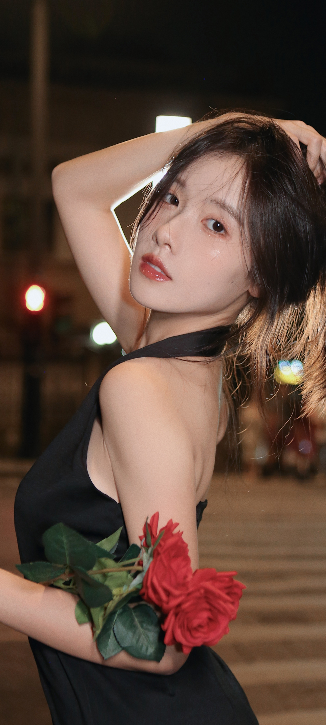 黑色裙子美女侧颜高清免费手机壁纸下载