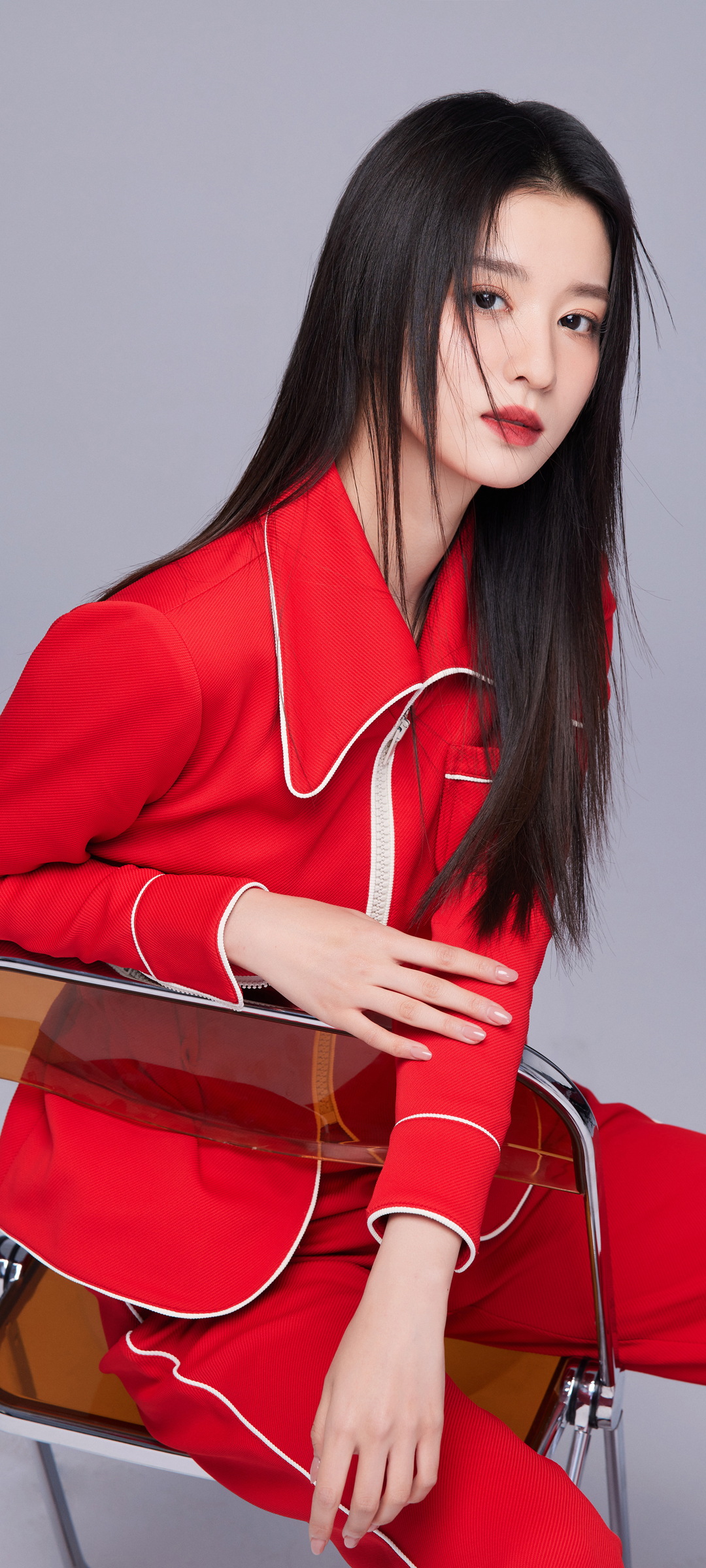 鞠婧祎黑红色裙子古风美女手机壁纸免费下载