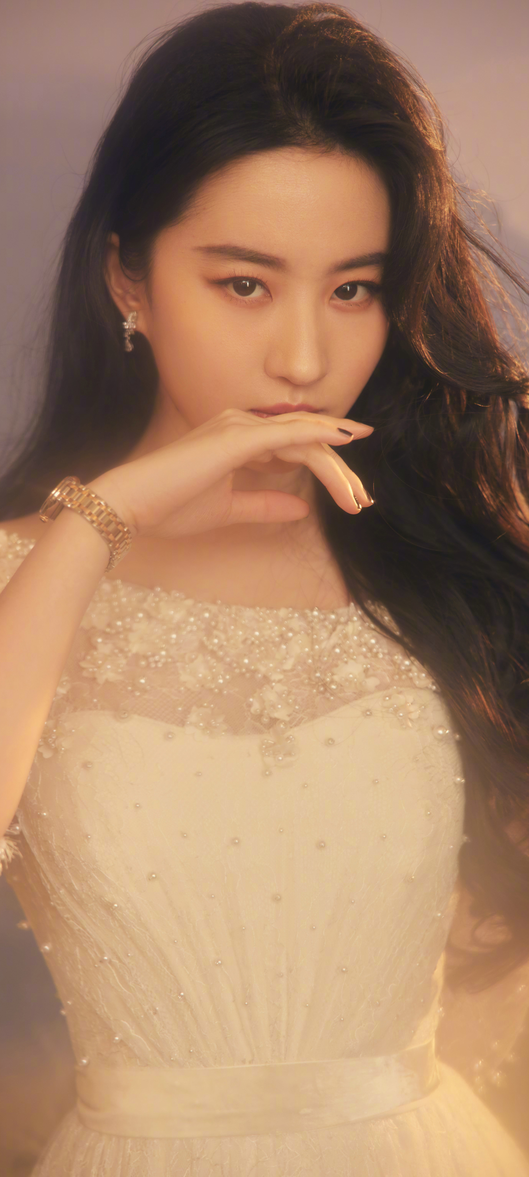 鞠婧祎侧脸白色蝴蝶结裙手机壁纸免费下载