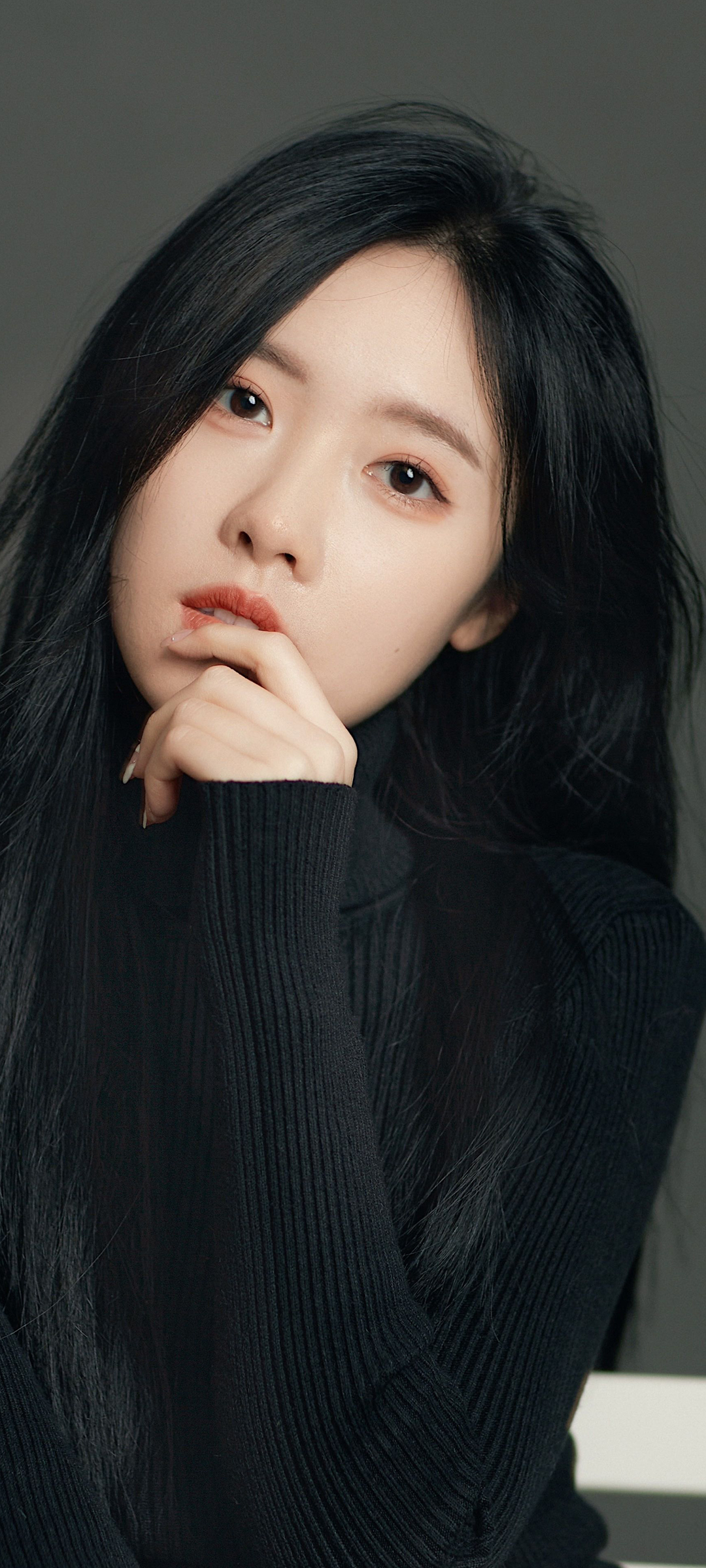 黑色毛衣气质美女手机壁纸
