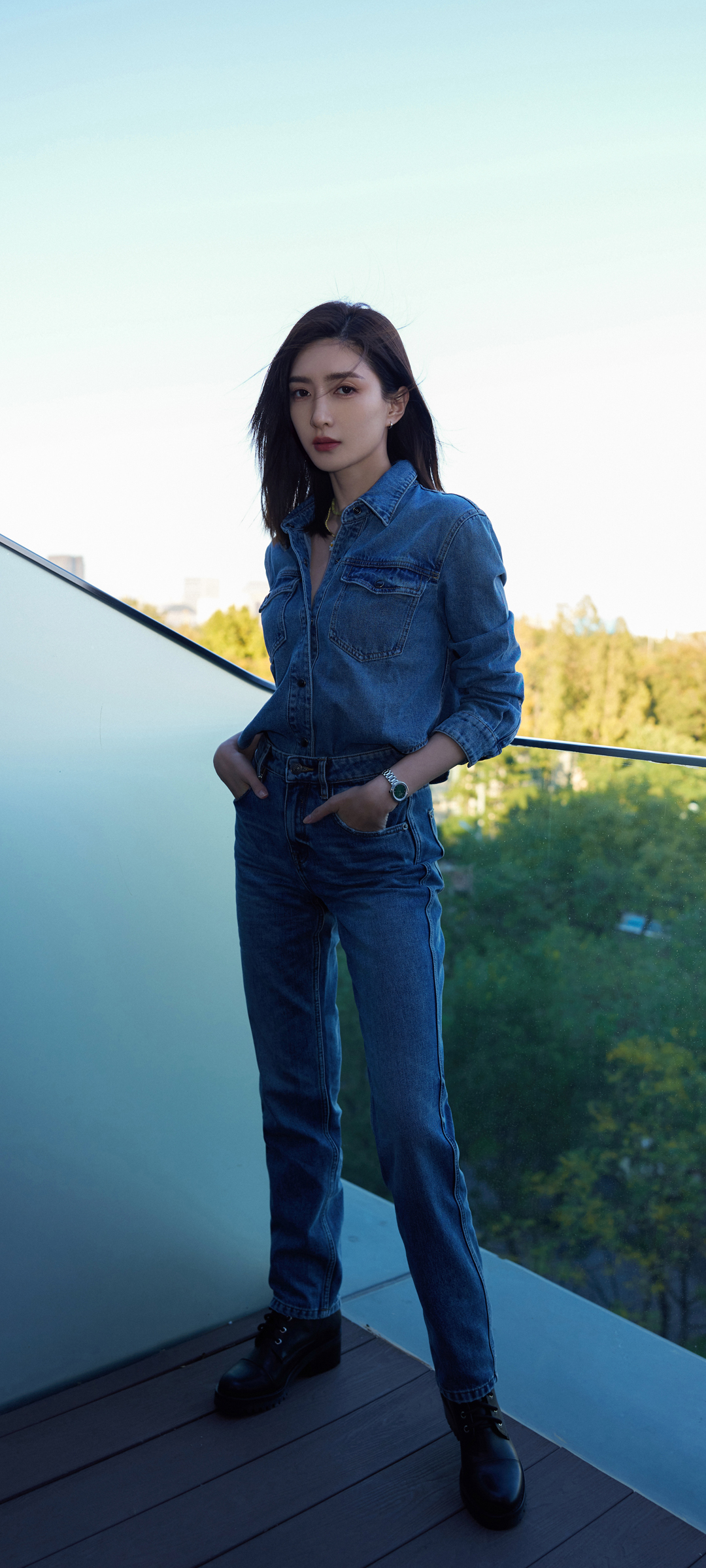 蓝色牛仔衣牛仔裙美女王乔熙 免费手机壁纸下载