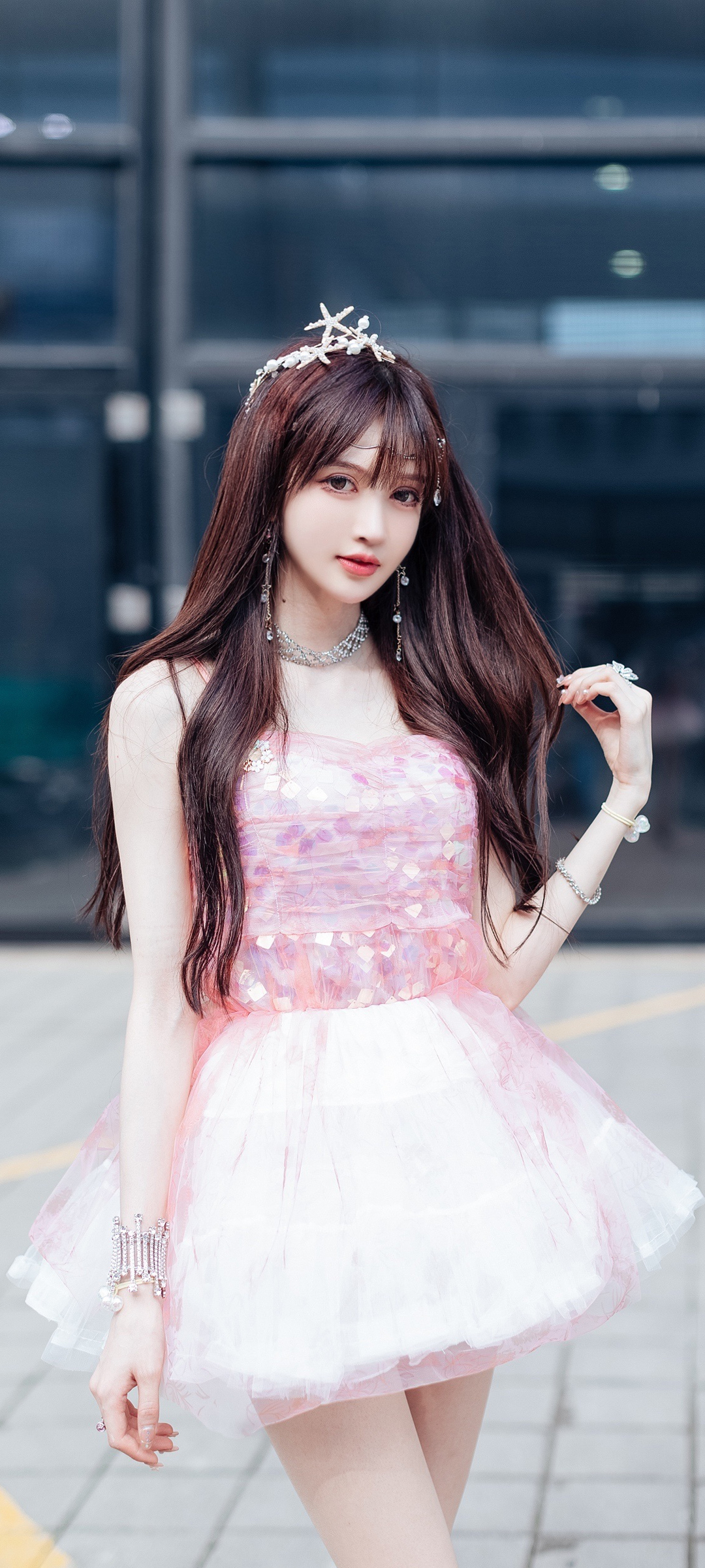 好看女神王羽杉 粉色短裙 美腿美女全屏手机壁纸