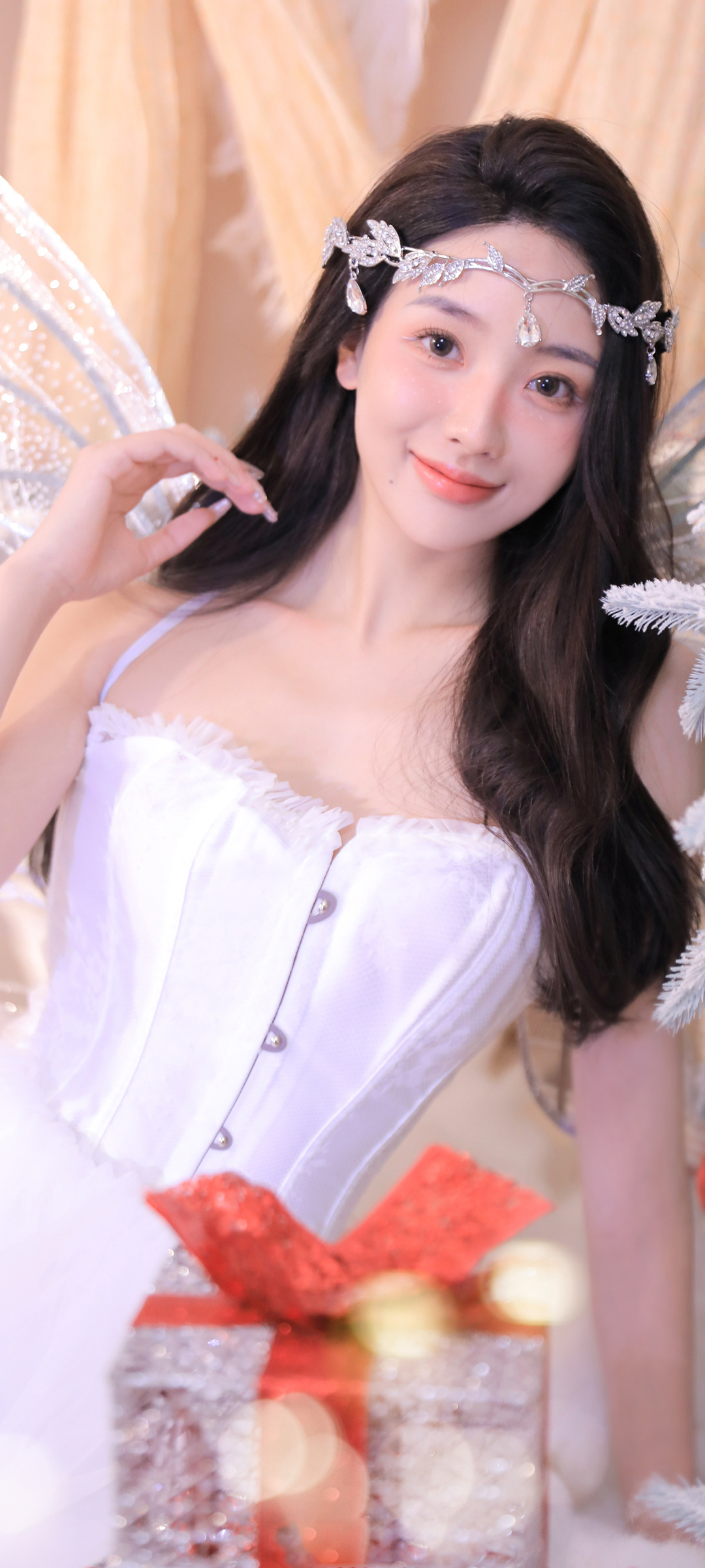美女甜美微笑 白色裙子 天使 高清美女全面屏手机壁纸