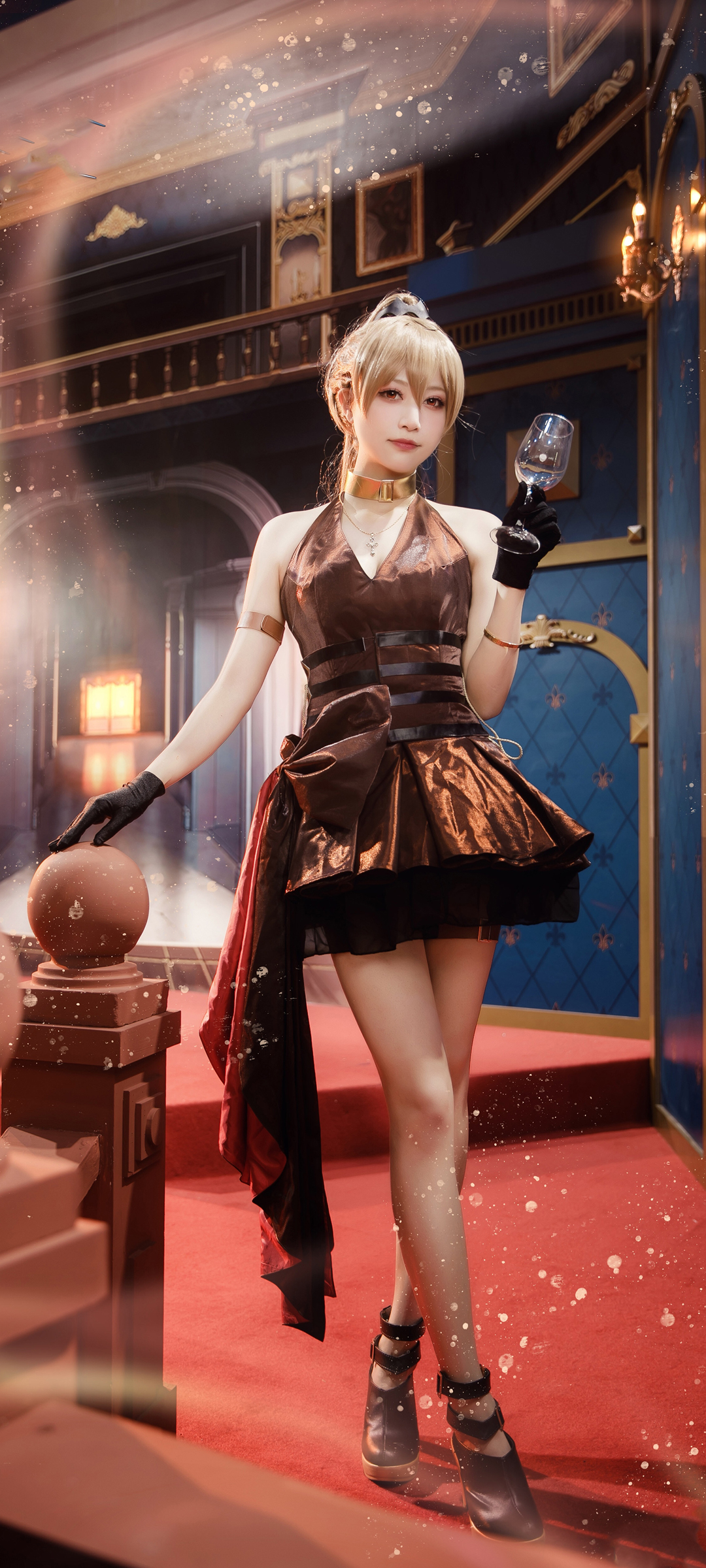 女神王羽杉粉色裙子美腿全面屏手机壁纸免费下载