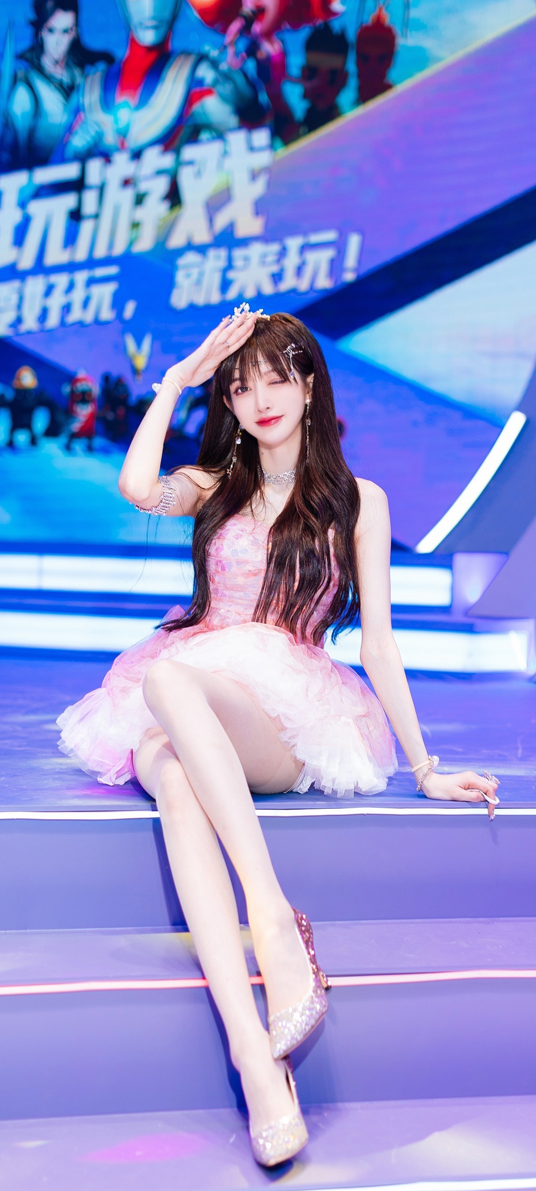 王羽杉 粉色裙子 高跟鞋养眼美腿全屏手机壁纸