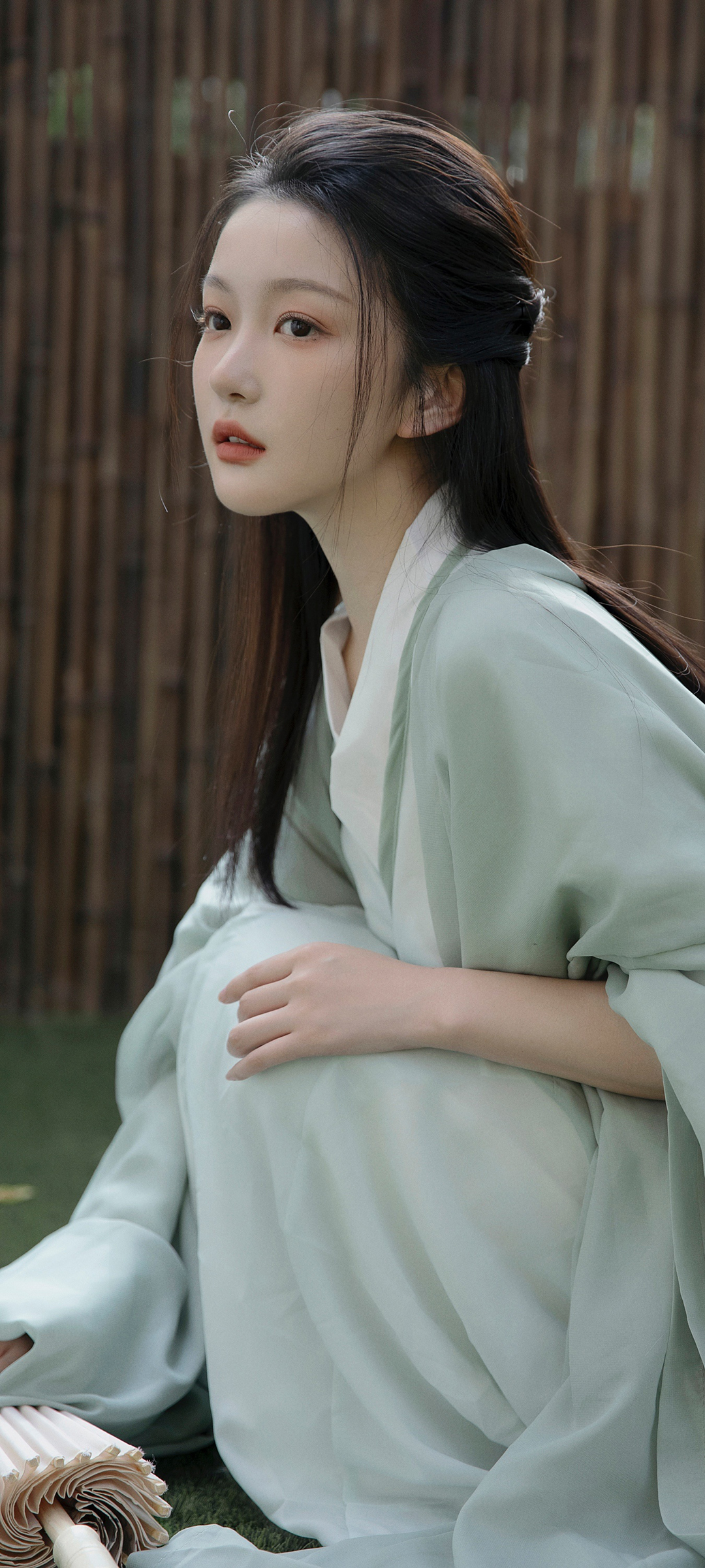 绿色裙子 清新 可爱美女长发手机壁纸