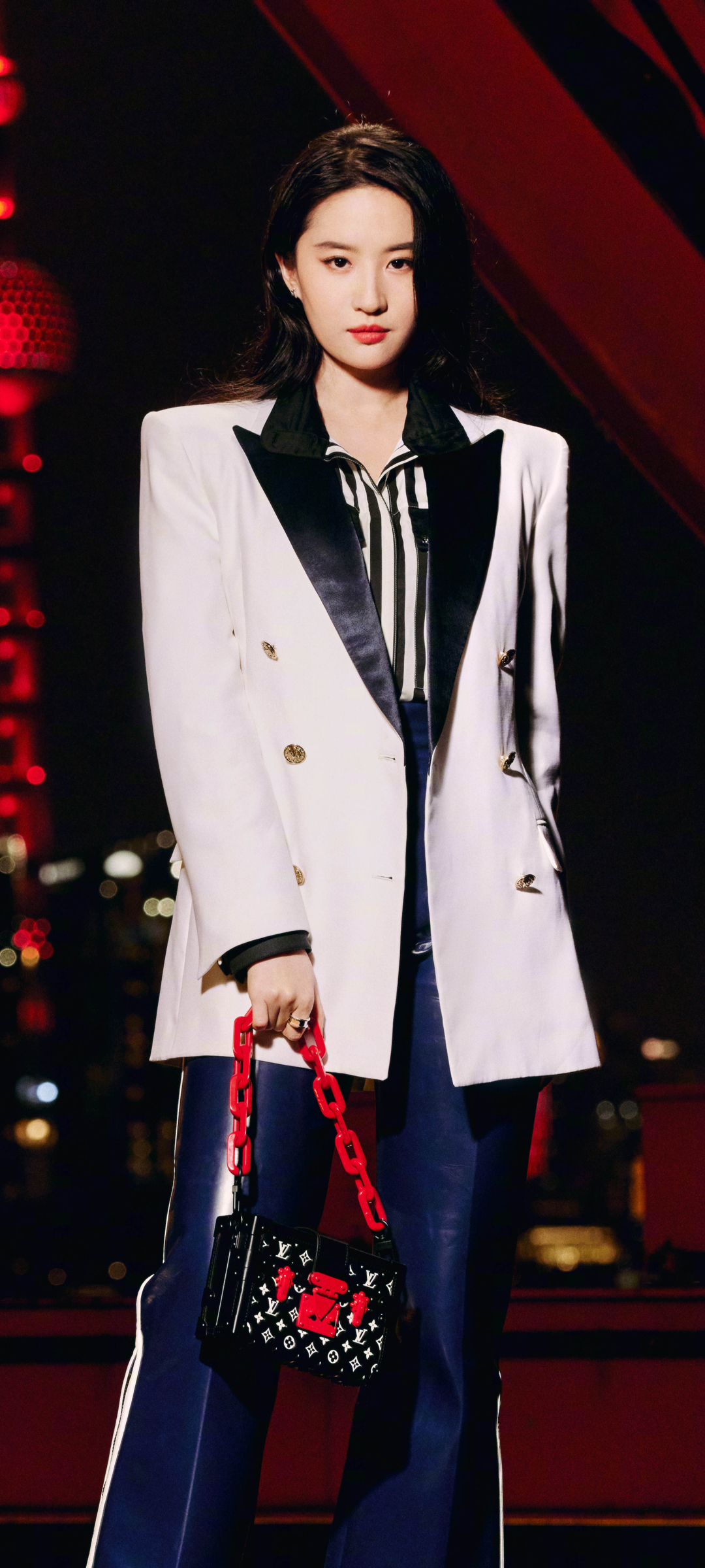 赵露思黑色制服西装美腿沙发全面屏美女手机壁纸免费下载