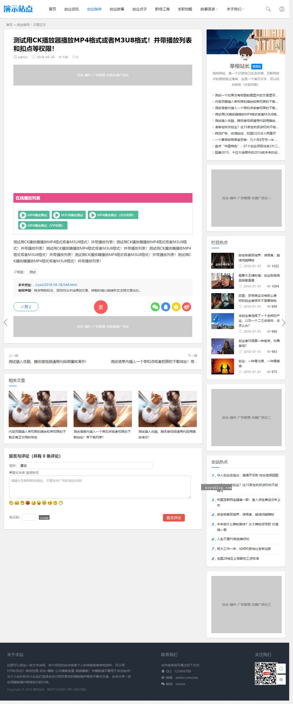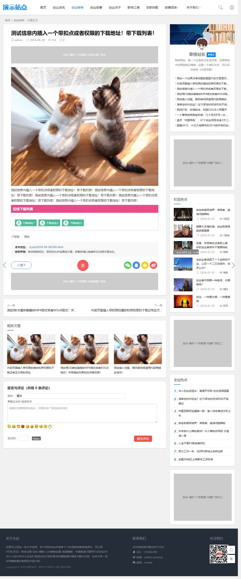 1.文章模式(可设置分页不分页):http://demo183.moyuapi.com/cyzx/535.html